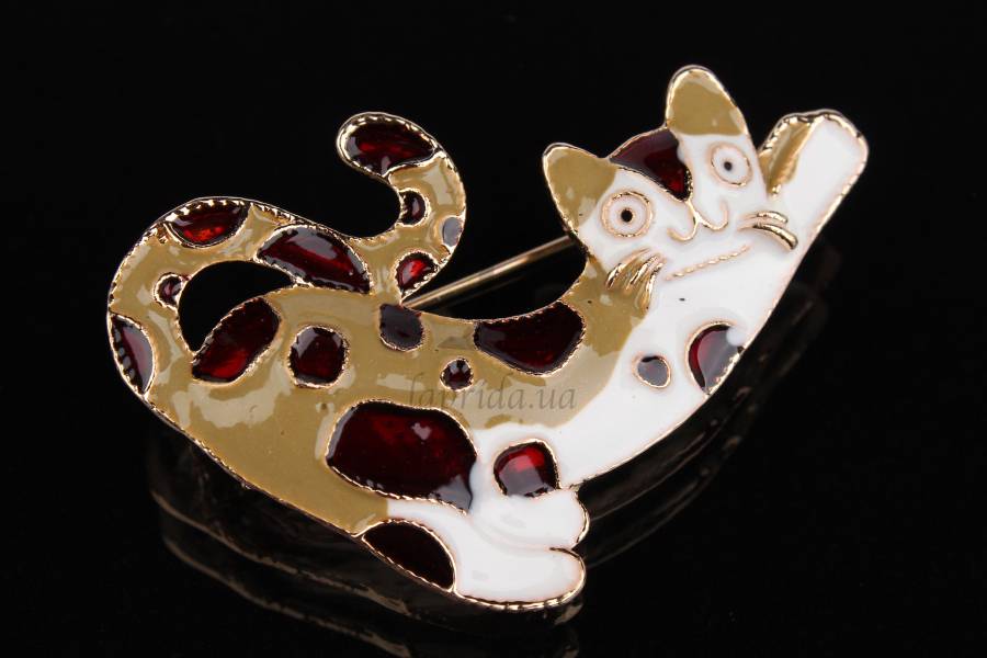 Брошь в виде кота коричневая