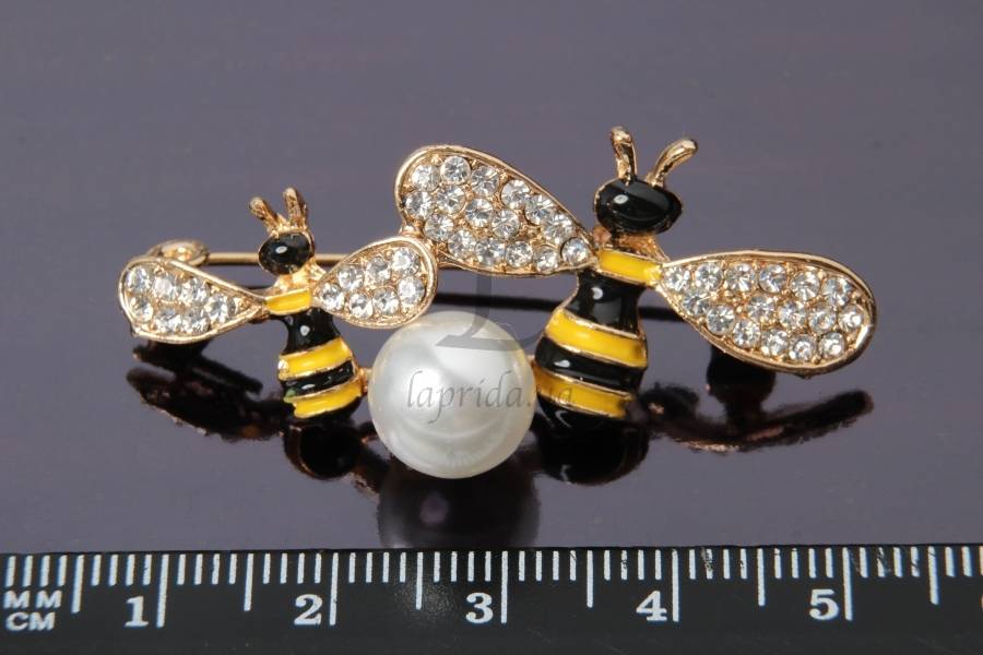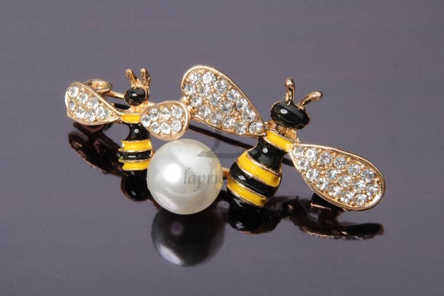 Брошь в виде осы с крылышками украшенными стразами