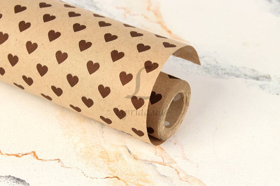 Бумага упаковочная крафт "Сердца мини шоколадные и белые" в рулоне (0,7м х8м) 70г/м2 255-9056