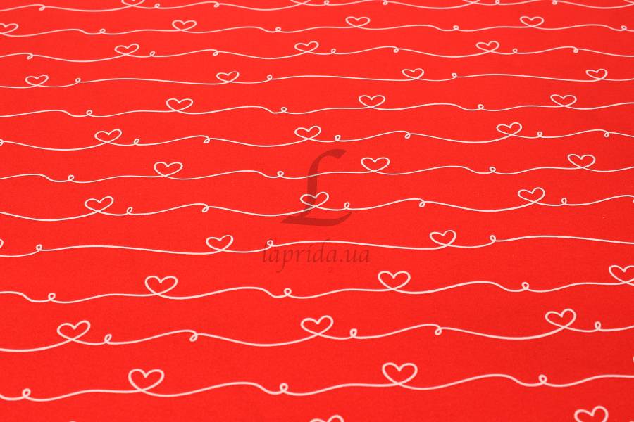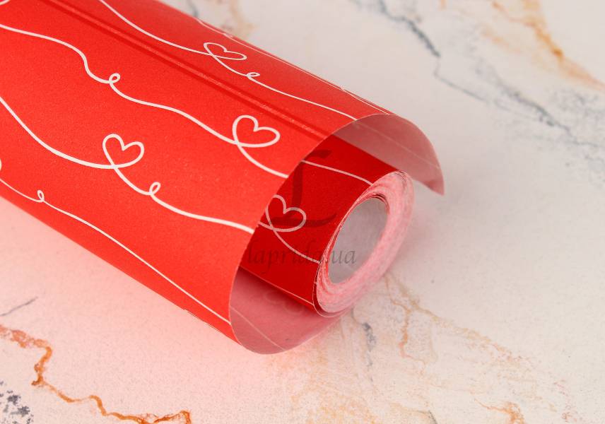 Бумага упаковочная "Лента лав на красном белом" в рулоне (0,7м х8м) 70г/м2 255-9087