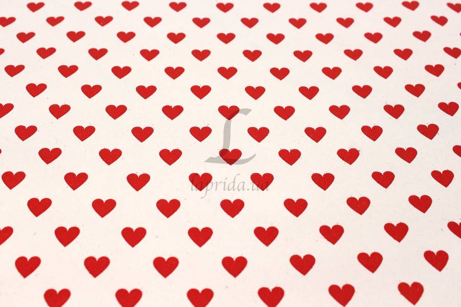 Бумага упаковочная "Сердца мини красные на белом" в рулоне (0,7м х8м) 70г/м2 255-9063