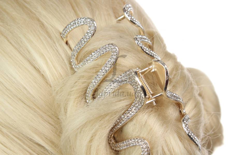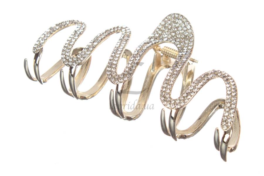 Краб "Fashion зигзаг" металлический серебро с камнями 11,5см 1-204339