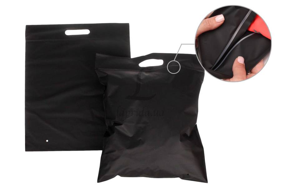 Пакет слайдер з ручкою 400х450 мм 75 мкм чорний матовий 31-134