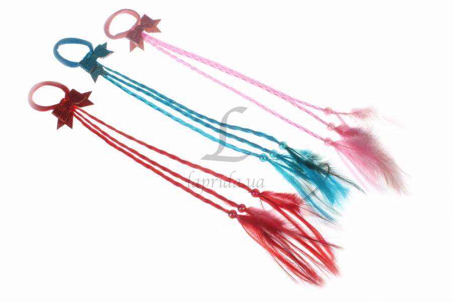 Резинка с прядями и перьями