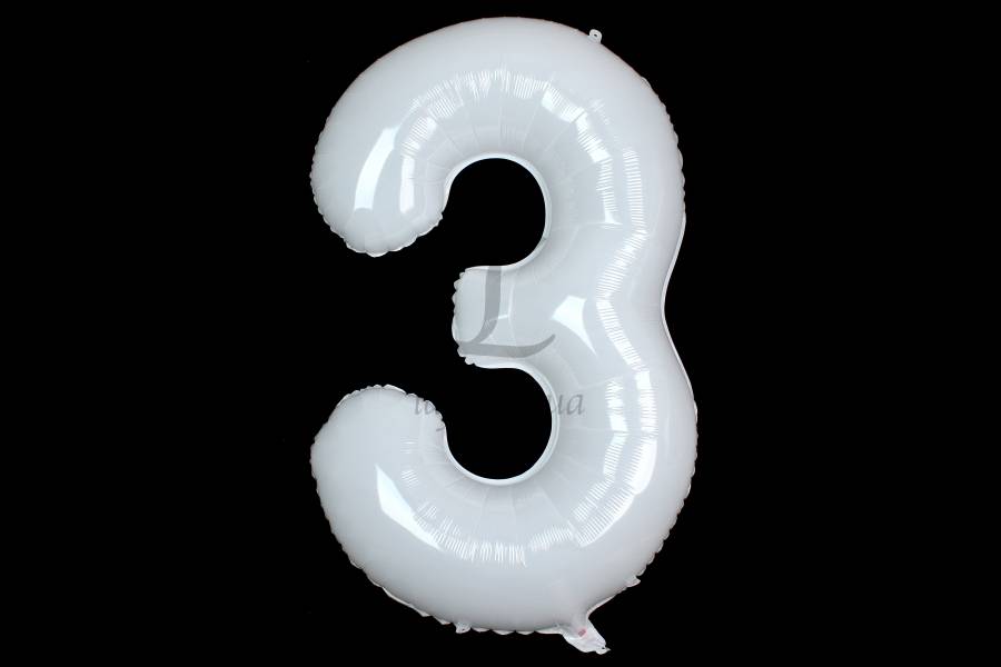 Воздушный шар в форме цифры белый "3" 1м 5-80977