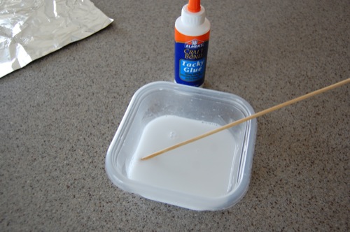 Крок 1: У ємність з водою додайте клей і перемішуйте до однорідної консистенції.