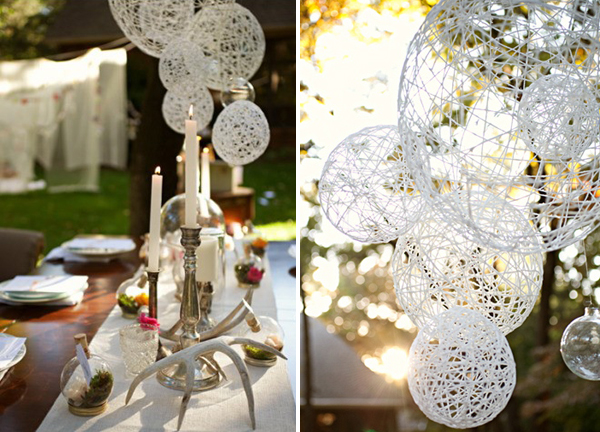 Такий декор буде доречний і в приміщенні, і навіть на природі. Зробивши безліч таких куль, Ви можете почати експериментувати: зв'язати їх в одну довгу гірлянду або підвісити кожен кульку окремо під стелею - в будь-якому випадку буде виглядати неймовірно красиво і урочисто. Кулі з ниток можна приурочити до будь-якого свята. Наприклад, прикрасивши білі кулі блискітками і сніжинками, Ви отримаєте відмінний декор для Нового року, а доповнивши яскраві кольорові кульки міні-декором у вигляді метеликів і квіточок - весняне прикраса, що піднімає настрій.