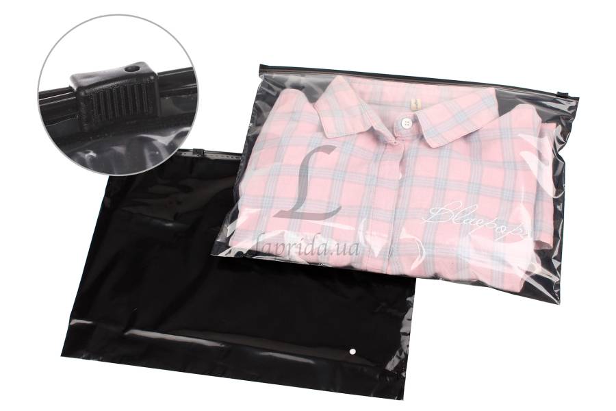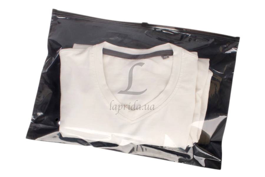 Пакет слайдер із чорним замком та прозрачною стінкою 350х250 мм 60 мкм чорний матовий 31-158
