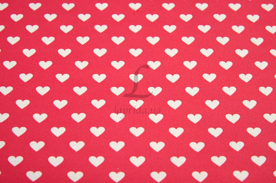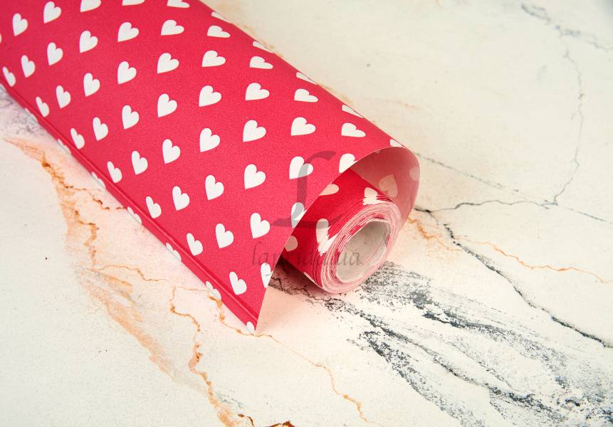 Папір пакувальний "Білі серця на рожевому" в рулоні (0,7м х8м) 70г/м2 255-9148