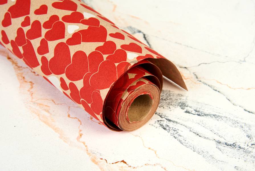 Папір пакувальний крафт "Мікс сердець чий та білих" в рулоні (0,7м х8м) 70г/м2 255-9162