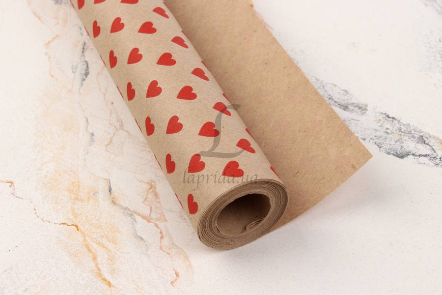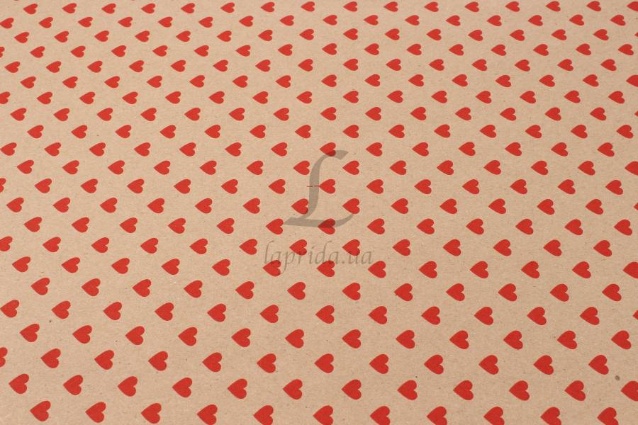 Папір пакувальний крафт "Сердця міні червоні" в рулоні (0,7м х8м) 70г/м2 255-7908