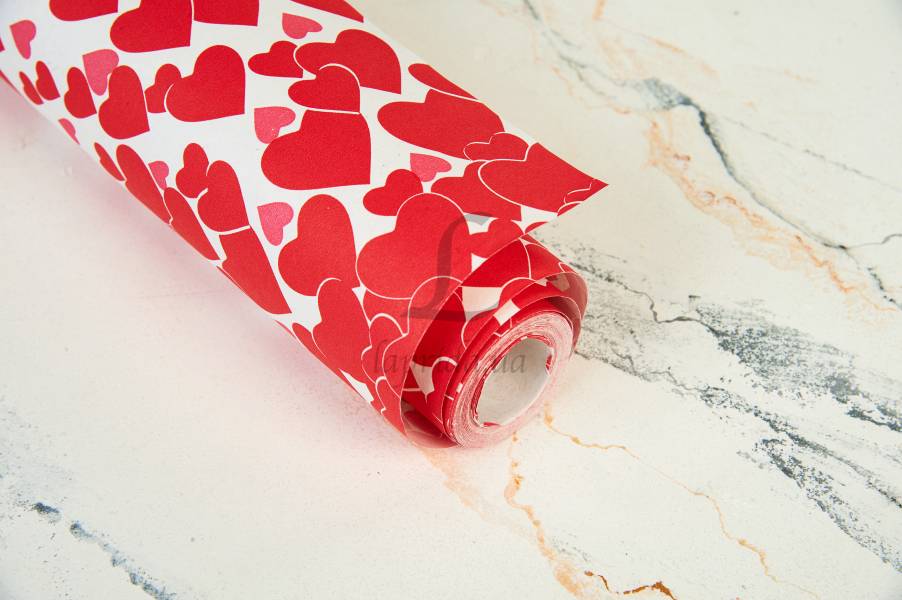 Папір пакувальний "Мікс рожевих сердець" в рулоні (0,7м х8м) 70г/м2 255-9155